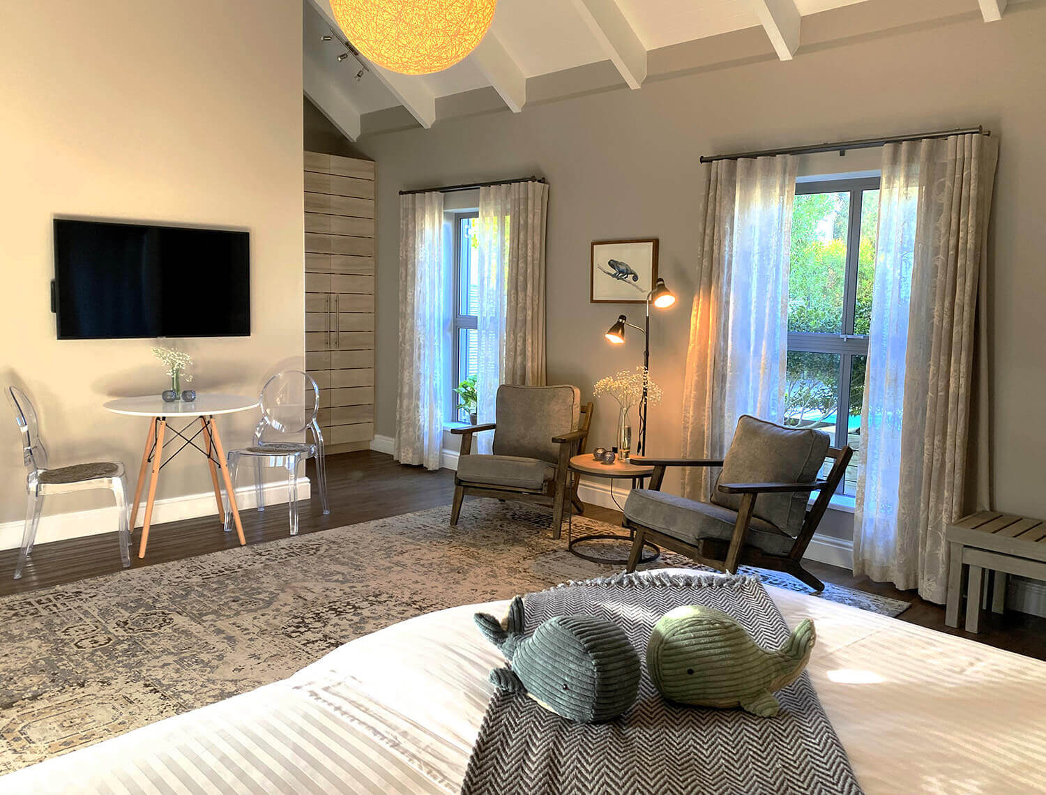 Beluga House är ett elegant gästhus som ligger rofyllt och bara några meter från klipporna i Hermanus. Den berömda klippstigen (Cliff Path) ligger på kort promenadavstånd – liksom flera utmärkta restauranger. Här bor du nära havet med mäktiga vyer över Walker Bay, och det är lätt att varva ned efter dagens upplevelser.
