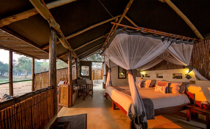 Med endast fyra sviter är Old Mondoro nationalparken Lower Zambezis minsta och mest privata safaricamp. De vackert inredda tältsviterna har stora sängar draperade med myggnät och bäddade med bekväma egyptiska bomullslakan. Badrummen har rinnande varmvatten, utedusch och badkar med utsikt över Zambezifloden. Varje svit har en privat veranda med inbjudande stolar och soffa, vilket är idealiskt när du vill ta en njutbar drink och spana efter djur. Campens välrenommerade kockar skapar rätter av högsta kvalitet i en stil som kallas Afro/Euro-fusion—resultatet gör till och med en kräsen konnässör lycklig. Här varierar man matplats. Ibland blir det direkt i bushen och ibland på en båt flytandes mitt i floden. För den som söker en mer avskild, ostörd och privat safari nära djuren är Old Mondoro det perfekta valet. Närmare ”riktiga Afrika” kan du knappast komma.