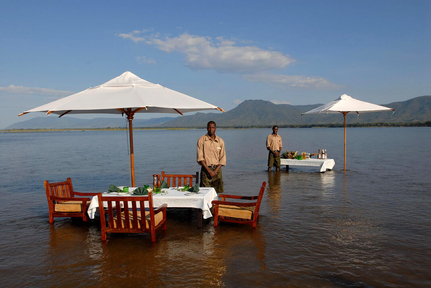 Magnifika Royal Chundu ligger utefter legendariska Zambezifloden, strax uppströms från Victoriafallen. Royal Chundu består av två förträffliga lodger, The River Lodge, som ligger direkt på flodbanken, och undangömda Island Lodge, som du finner på Katambora Island. Båda lodgerna består av vackert inredda och rymliga sviter i praktfull kolonial- och safaristil. River Lodges sviter har en öppen planlösning som leder ut på ett privat däck med utsikt över zambezifloden och savannen i närliggande Matetsi Game Reserve. Island Lodge består av fyra lyxiga villor med egen ”Boma” för utomhusmiddagar, en inbjudande restaurang, vacker infinitypool och ligger omgiven av fantastiska baobabträd och ståtliga Jackalberryträd. Lodgen stoltserar även med ett prisbelönt spa och ett välrenommerat kök. Royal Chundu är Zambias enda medlem av ansedda Relais & Chateaux.