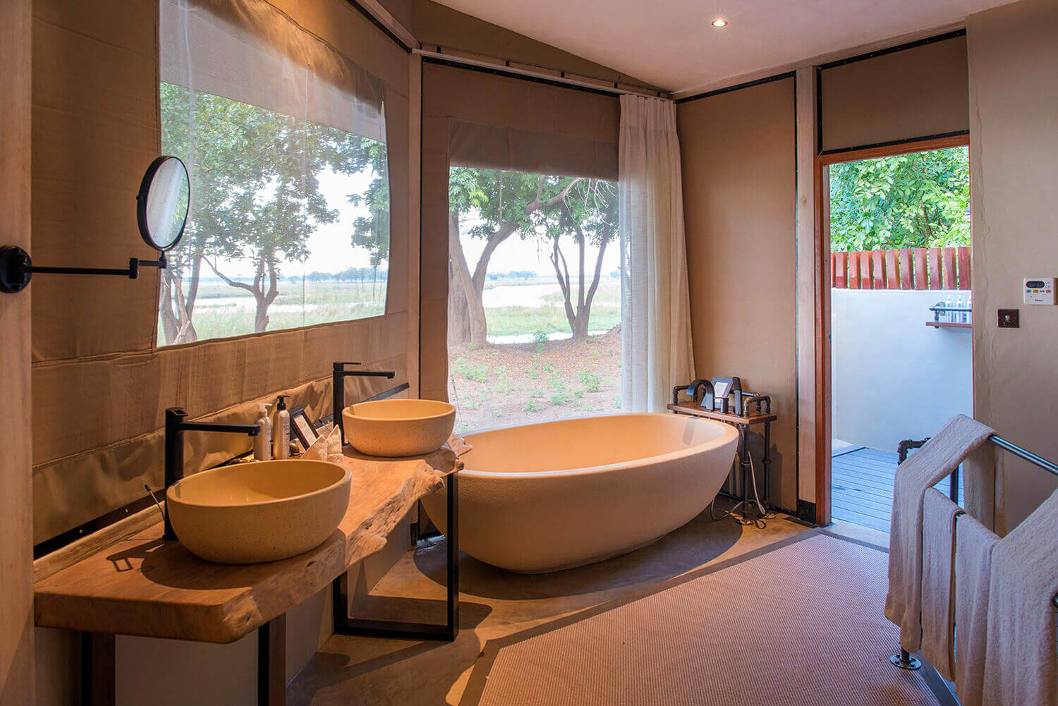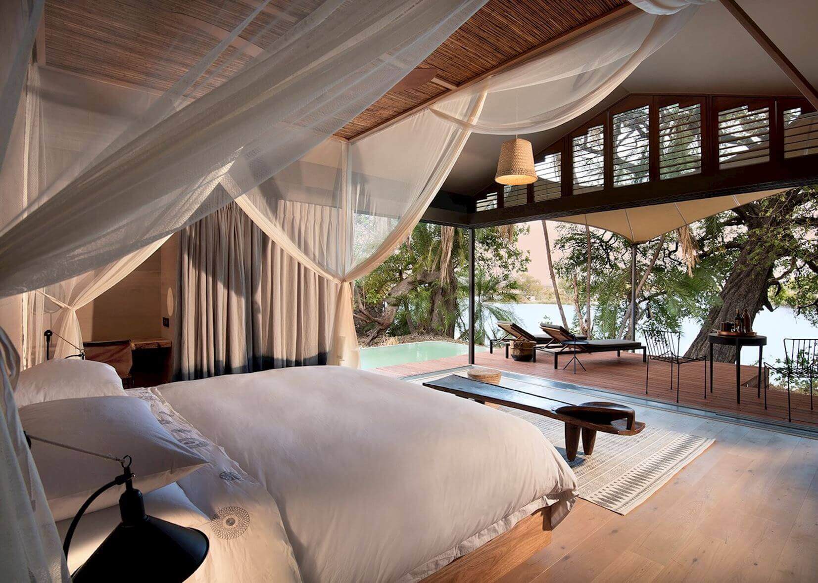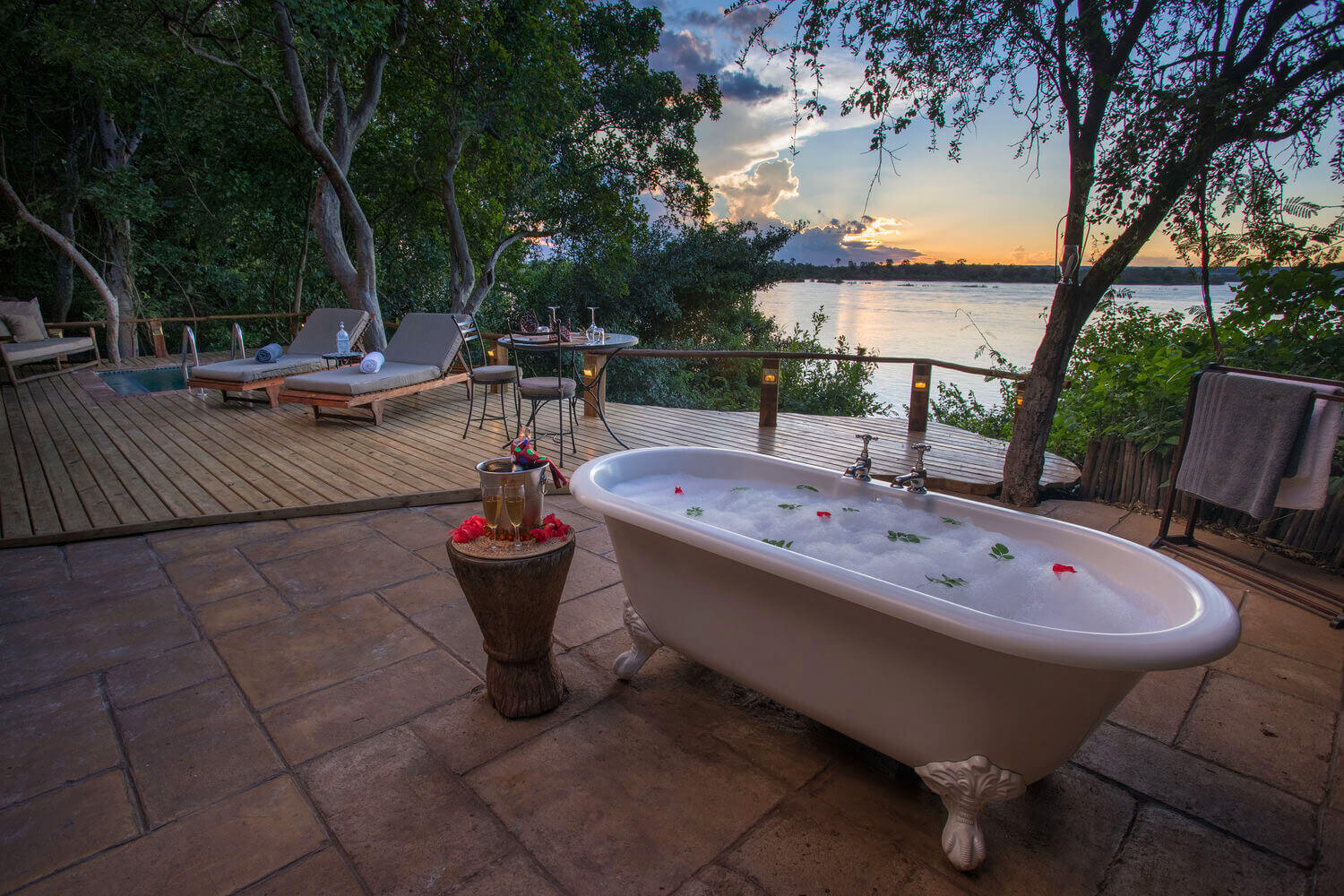 Tongabezi Lodge är en glimrande juvel utefter Zambezifloden och ligger bara några kilometer norr om de lika mytomspunna som mäktiga Victoriafallen. Tongabezi är känt för sin förträffliga service och varje villa kommer med en egen butler som under din vistelse även agerar concierge. De rymliga villorna är individuellt inredda, men med den gemensamma nämnaren att villorna har voluminösa terrasser med magiskt vacker utsikt över Zambezifloden. Inredningen går över lag i smakfull elegant prakt. Tongabezi Lodge är en romantisk pärla som bör vara med på alla smekmånadsfirares resplan.