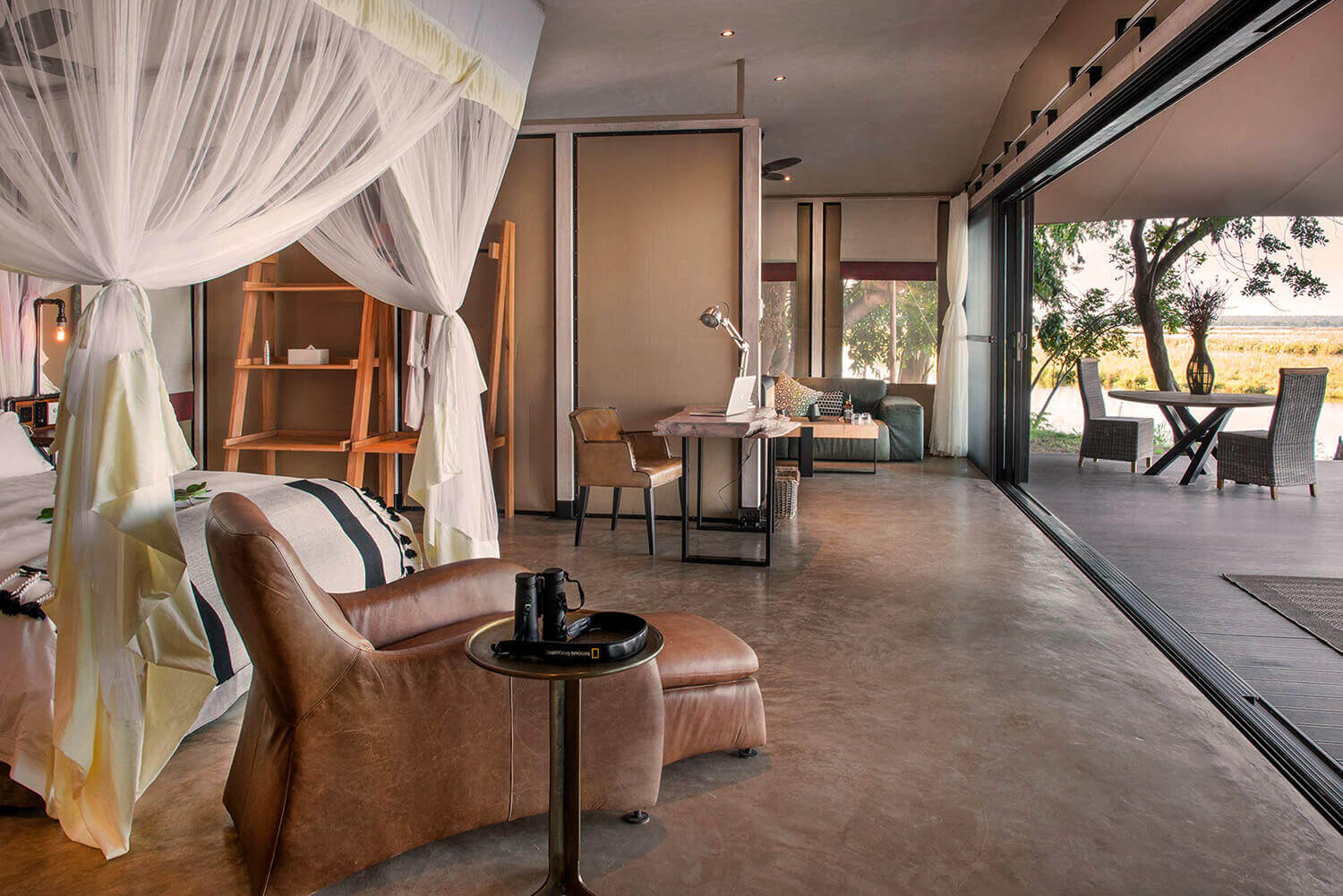 Flotta Chinzombo ligger på bästa möjliga plats längs Luangwa River, i ett av Zambias mest djurrika områden. Campen är designad av stjärnarkitekterna Silvio Rech och Lesley Carstens som ligger bakom många prisbelönta lodger och retreat över jorden. Chinzombos sex majestätiska privata villor ligger med magiskt vacker utsikt över både flod och savann. Designen i och av villorna är genomtänkt in i minsta detalj. Den öppna planlösningen är inredd med elegant safaristil i modern tappning och byggt i naturmaterial. Runt villan med vardagsrum, luftkonditionerat sovrum och lyxigt badrum, löper ett stort trädäck med privat pool. Här finns även en större villa utformad som familjesvit med två sovrum. Oavsett var du bor Chinzombo vill du inte checka ut!