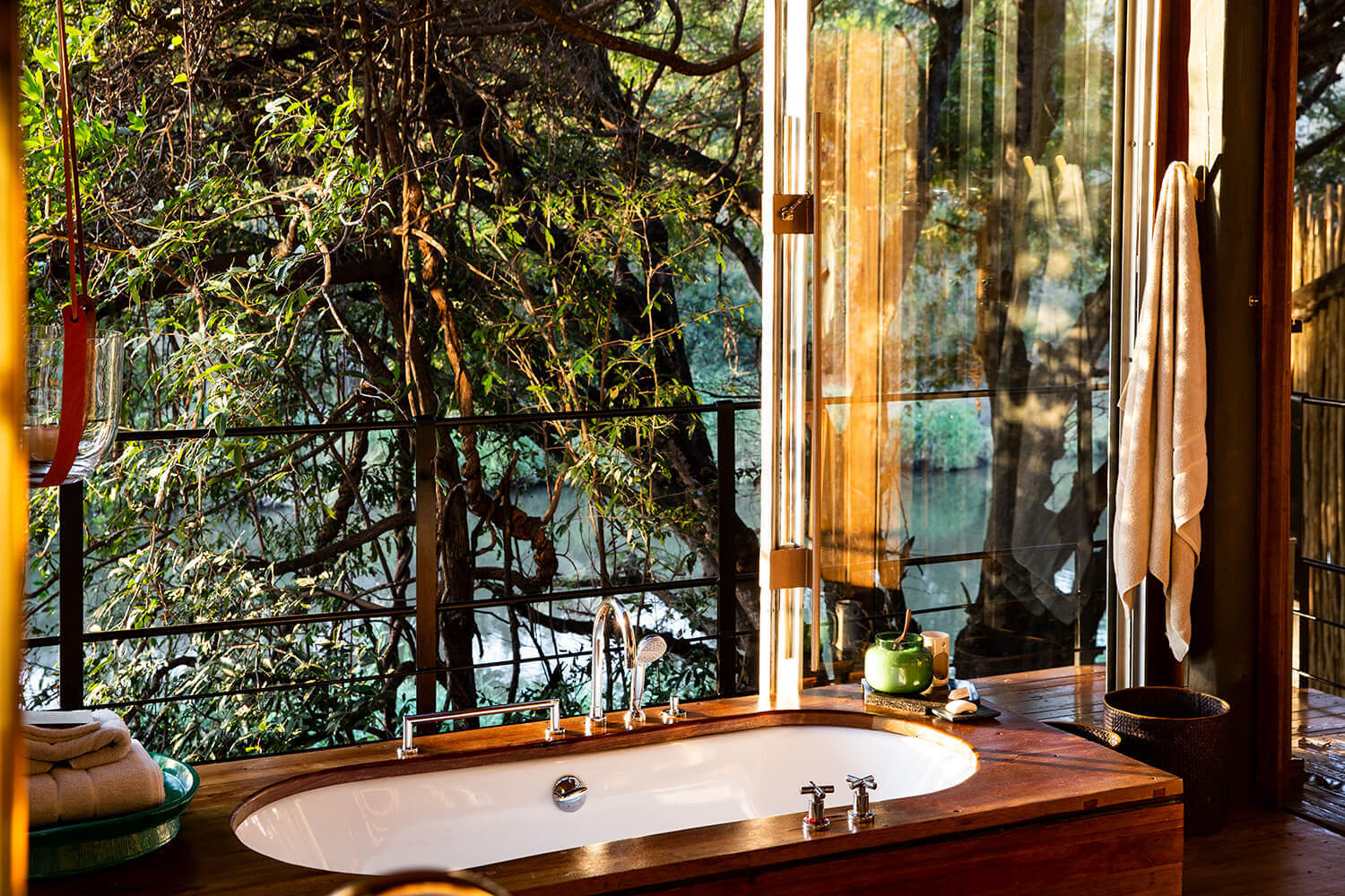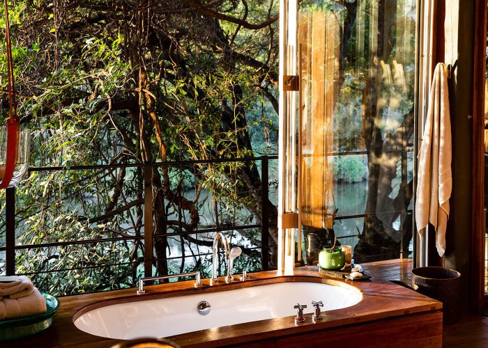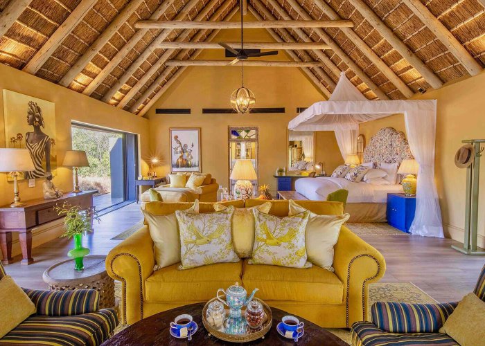 Lodgen består av åtta luxuösa luftkonditionerade sviter i 1920-talsdesign. Allt andas historisk romantik i form av koffertar, persiska mattor, kristallglas och silkesgardiner, men utrustade med nutida bekvämligheter och tekniska finesser. Alla sviter är på 128 m² och försedda med en veranda på ytterligare 135 m². Det betyder ett rymligt, elegant och bekvämt sovrum liksom dubbla(!) badrum som är utrustade med badkar och inne- liksom utomhusduschar. Den rejält tilltagna verandan är begåvad med en liten pool och fantastisk utsikt över Sand River.